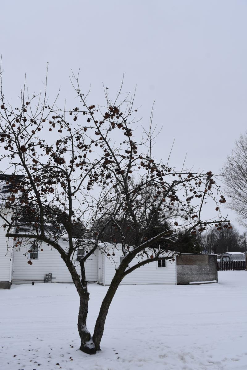 Enjoy the mature fruit tree while you spend time in your backyard oasis.
